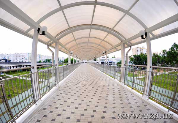 This time around, another innovation has been introduced into Uzbekistan’s road construction sector, namely, two covered viaducts, 102 and 111 meters long, respectively, for pedestrians have been built on both sides of the overpass. To ease going up and down escalators and lifts are set up here along with the traditional stairs. Few megalopolises in the world can boast with such modern passageways that envisage all the conveniences for people. The facility has become another practical instance of reverence for senior generation people in our country, of securing human interests.