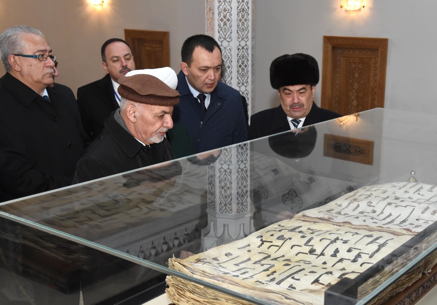 The President of the Islamic Republic of Afghanistan Mohammad Ashraf Ghani visited the Khazrati Imam (Hastimam) complex, in Tashkent.