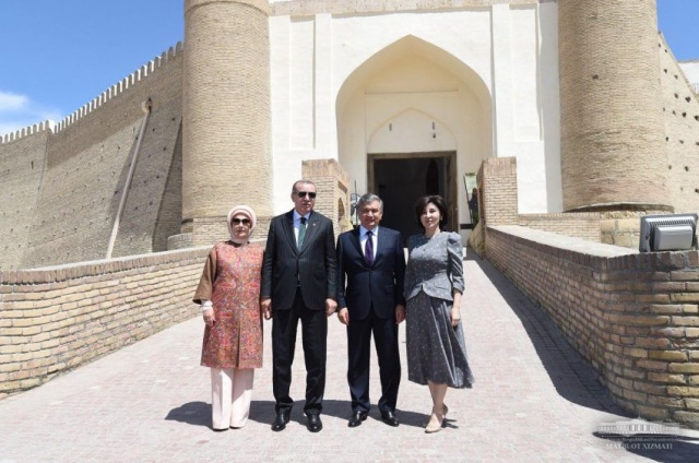 The President of Turkey RecepTayyip Erdogan, accompanied by the President of Uzbekistan Shavkat Mirziyoyev, visited the regional museum of local lore Ark fortress in Bukhara.