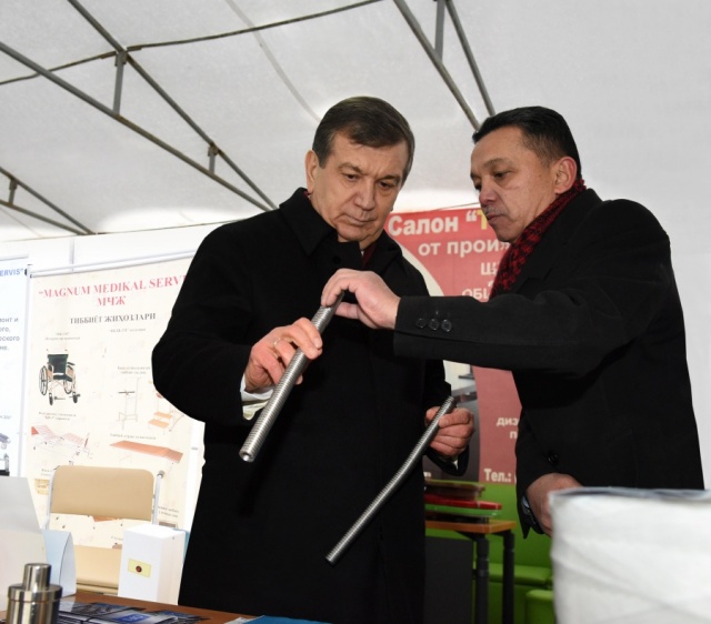 During a conversation with entrepreneurs, running a business in the territory of the technopark, Shavkat Mirziyoyev called for efficient use of favourable business conditions, created in the country, increasing the quality of goods, developing export activity, active participating at the exhibitions abroad. The officials, responsible in this regard, were given instructions to widely support businesses, localization of goods, provision of investments to import raw materials and to produce finished products in our country.
